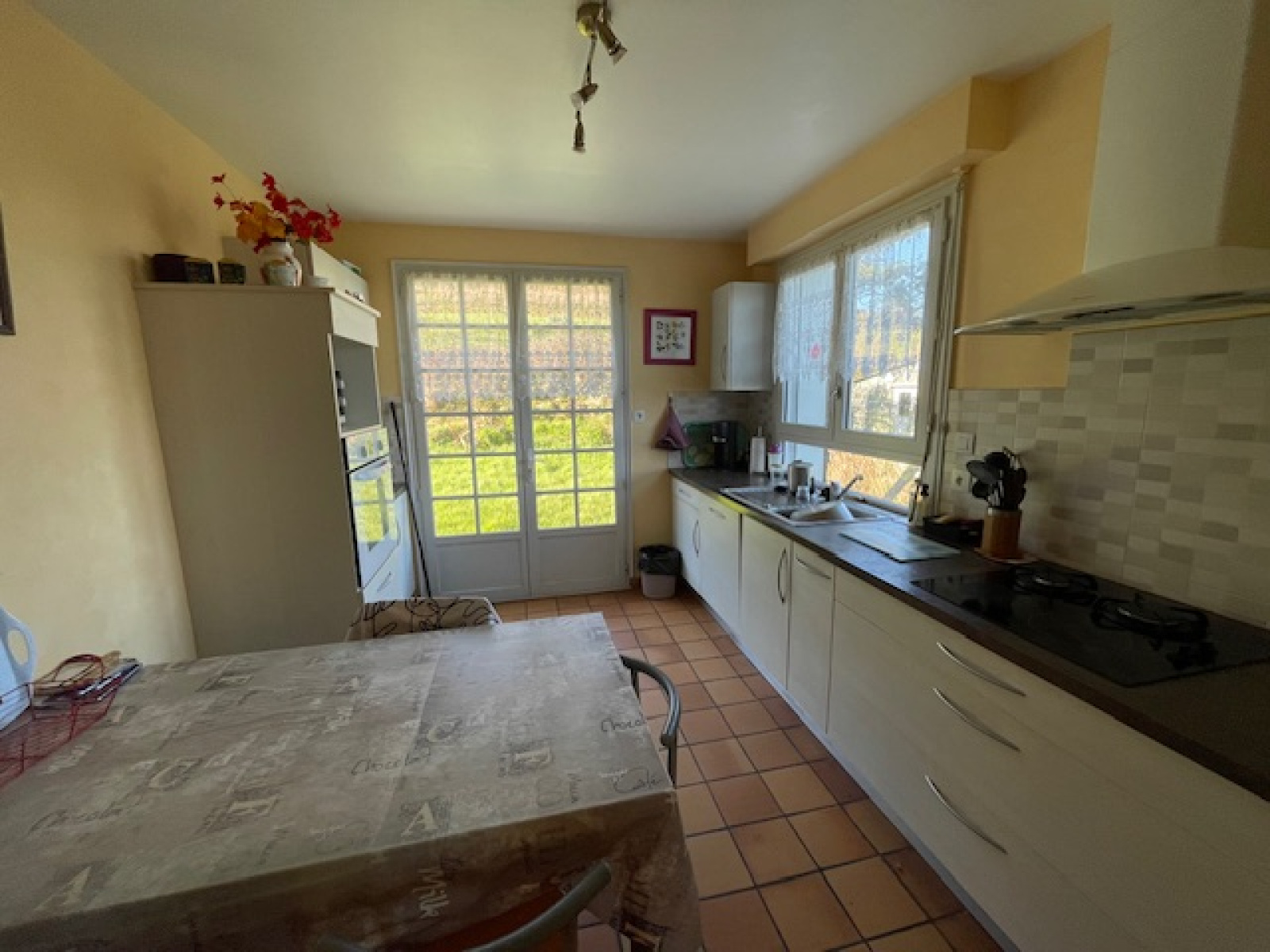 Sous-sol total avec garage, salle d'eau, water-closet, chaufferie, cave et cuisine d'été.