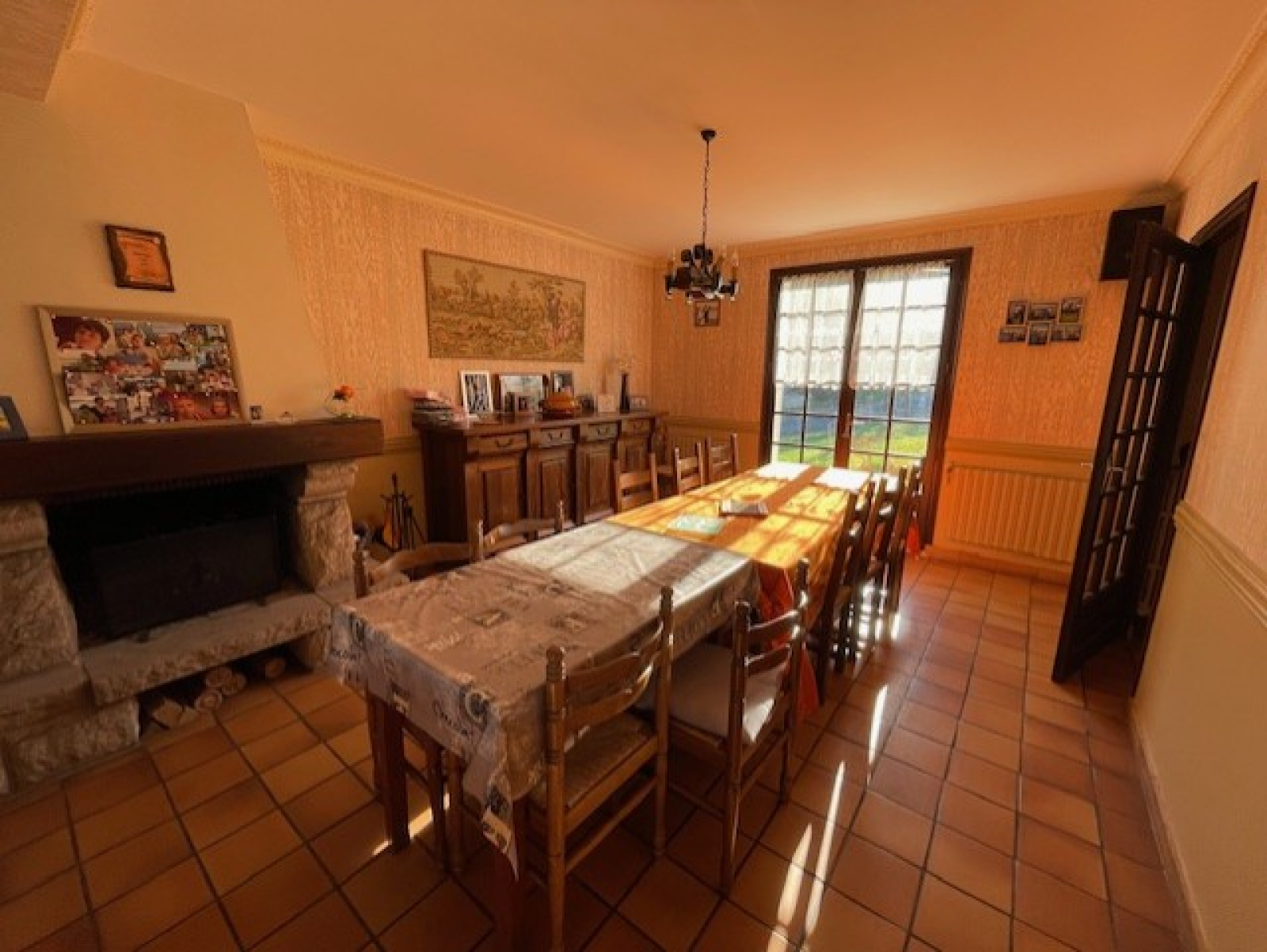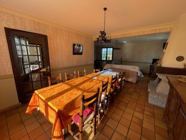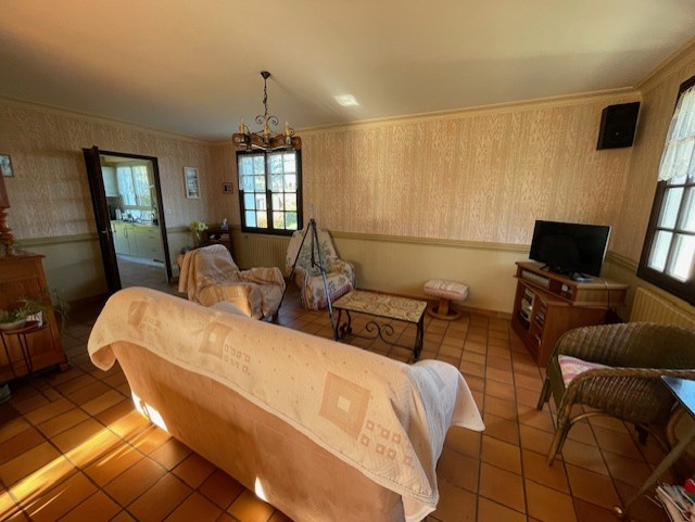 Au rez-de-chaussée: Entrée, salon avec cheminée, salle à manger, cuisine, chambre, salle de bains, water-closet.